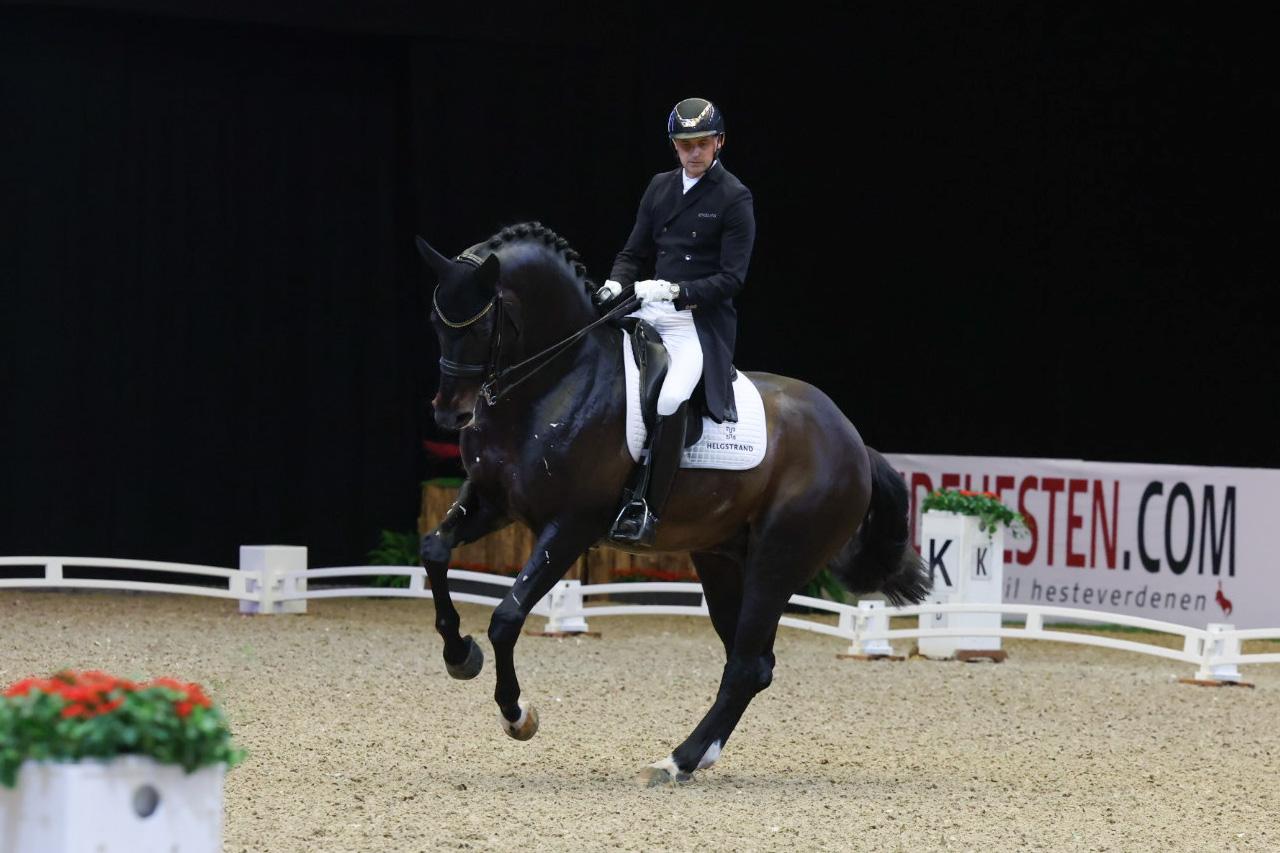Det var en storslået klapsalve, der fulgte Andreas og Jovian efter deres afsluttende hilsen i Boxen her til eftermiddag! Efter en nærmest fejlfri Grand Prix-debut ved det 5-stjernede stævne i forbindelse med Dansk Varmblods Hingstekåring kunne parret høste imponerende 76%.
