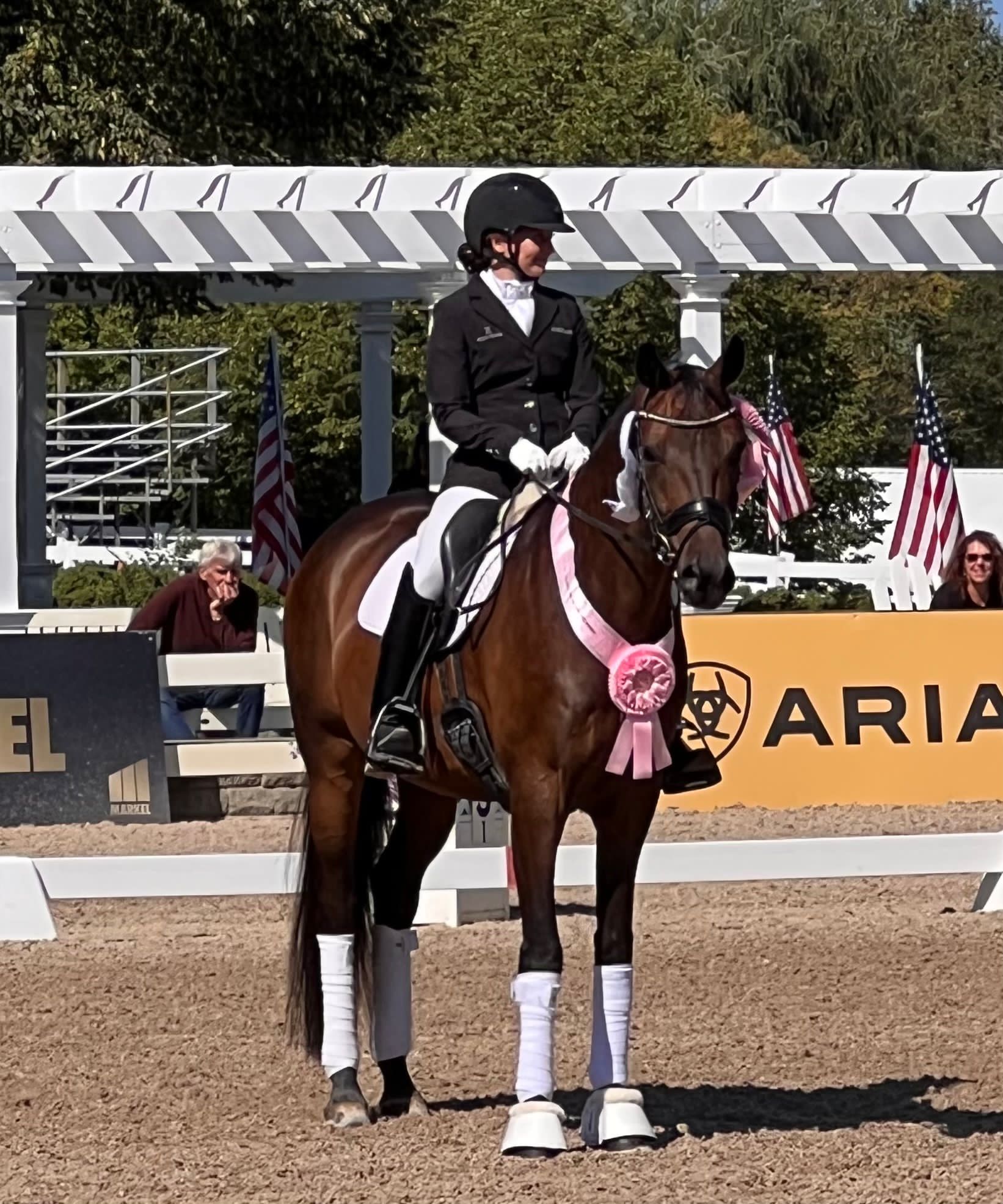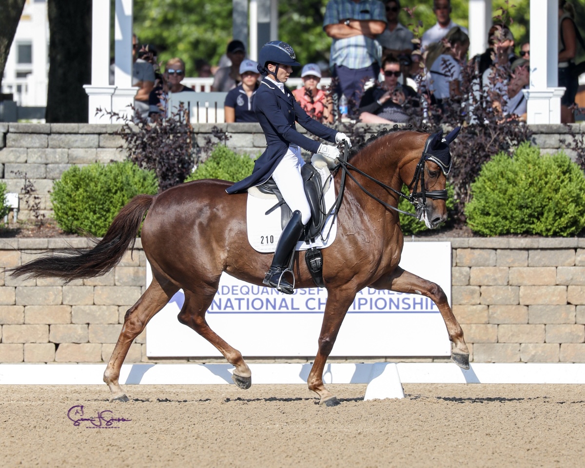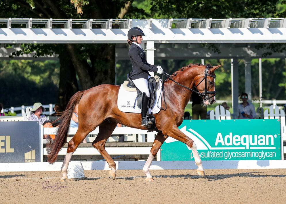 Lad os starte med Nora Batchelder og hendes smukke hoppe, Nova, som hendes sponsor Carol Glover, købte fra Helgstrand Dressage sidste år. Nora og Nova leverede det ene flotte ridt efter det andet, og til trods for deres relativt korte partnerskab, så oversteg de alle forventninger og sluttede på en sammenlagt 2. plads og dermed sølvet i U.S. Intermediare Mesterskabt.