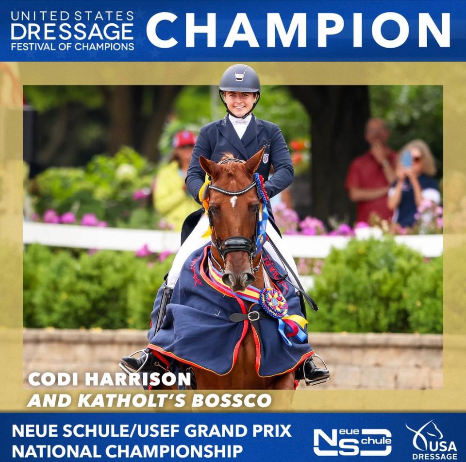 Sidt men ikke mindst, så slutter vi af med vores nye U.S. Grand Prix Champions, Helgstrand-rytteren Codi Harriso og hendes skønne Katholt’s Bossco. Ridt efter ridt fortryllede de publikum og sikrede sig en yderst imponerende guldmedalje samt den prestigefyldte mesterskabstitel - U.S. Grand Prix Champions 2023.