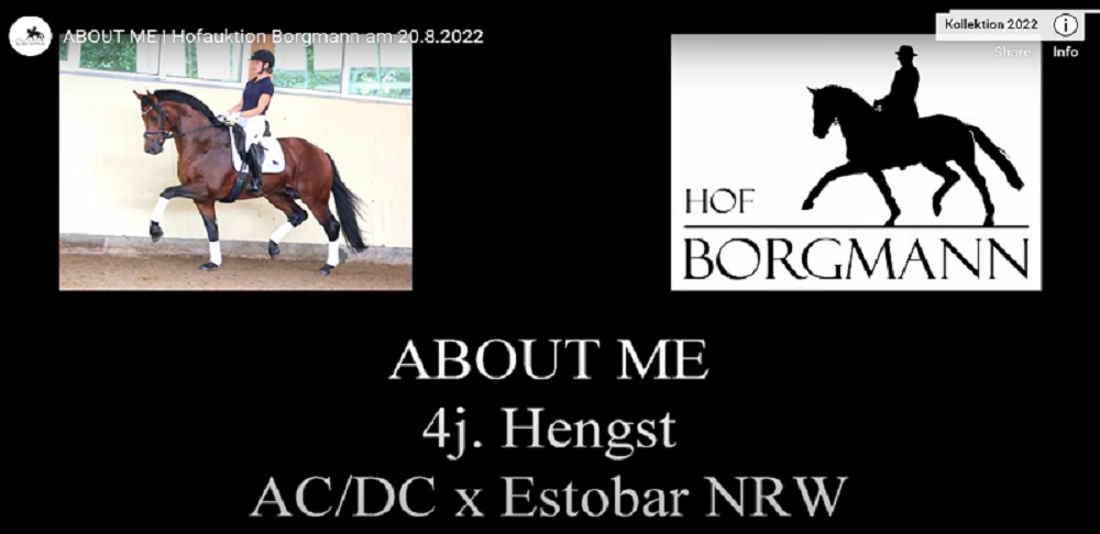 Video: We can’t get enough of this amazing stallion; About Me by AC-DC/Estobar NRW/Popcorn. Acquired by Helgstrand for 1.35 million euros at the 2022 Borgmann Online Auction. Enjoy the video made by the Borgmann Auction team.