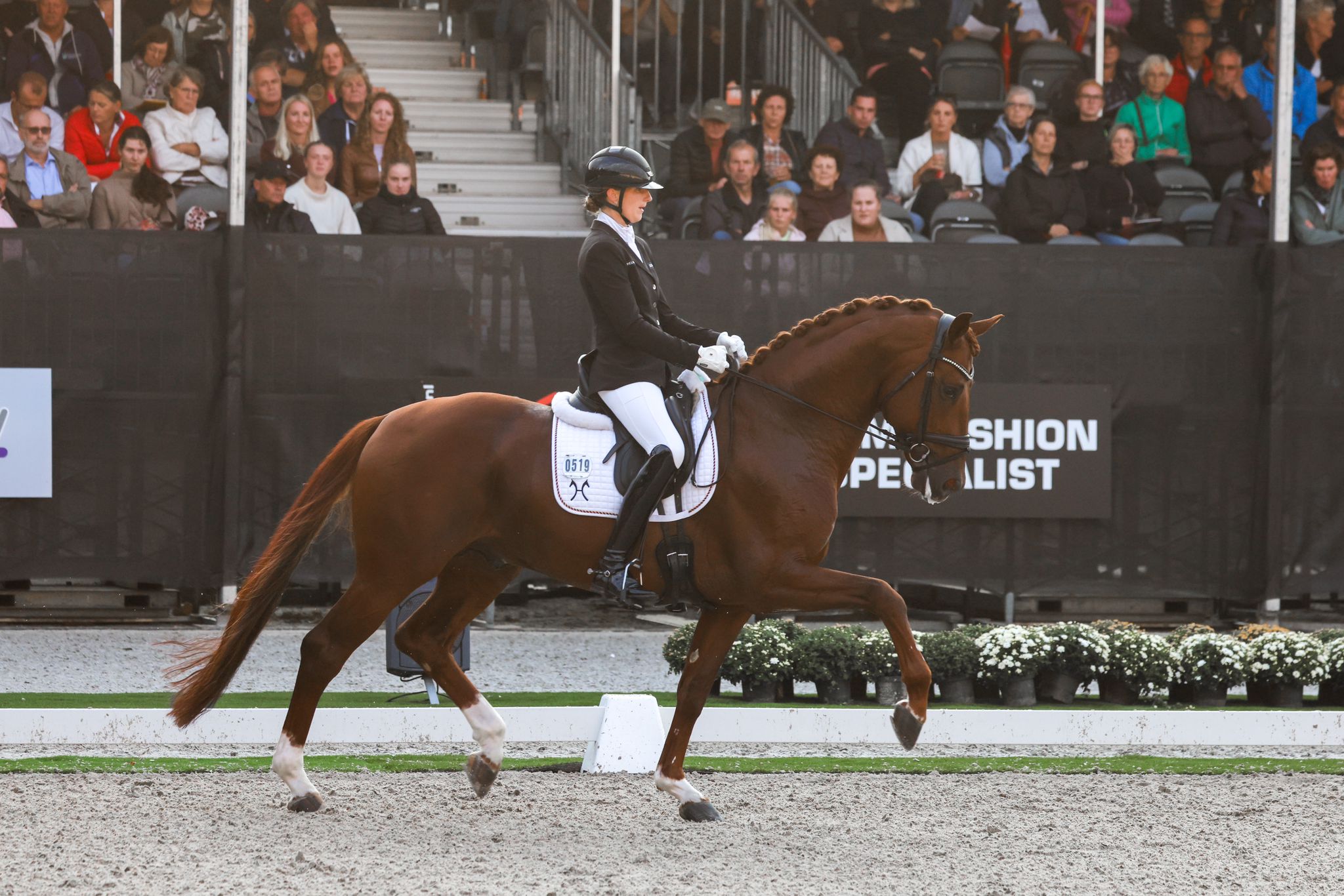They danced into the hearts of everyone - Leonie Richter and the 5-year-old chestnut by Vitalis out of a De Niro. Vitalos is part of the Helgstrand-Schockemöhle Stallion Collection. He is a stallion with three supreme gaits, no weaknesses, a fantastic willingness to work, and an amazing rideability. Recently, he was crowned Hannoveraner Champion and today, he won a silver medal at the 2022 World Championships for young dressage horses earning a total score of 9.06 with the following marks: