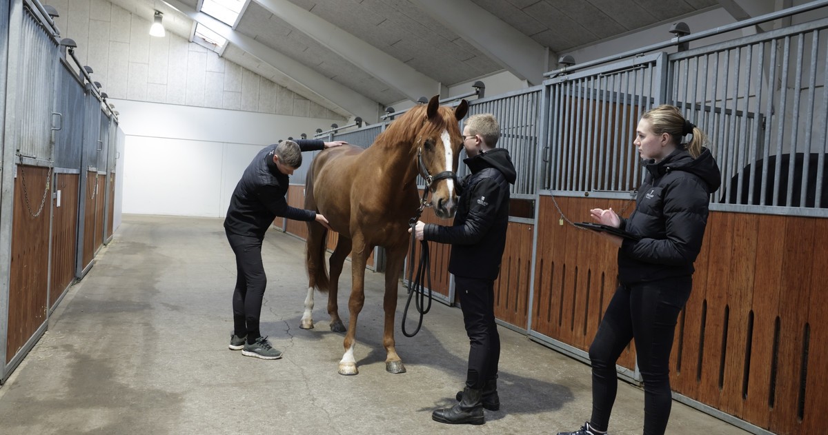 We conduct thorough self-checks of the horses, where a stable manager and a representative from management review all horses at our three Danish locations every 14 days. The horses are checked for skin irritations, scratches, general hygiene, swollen tendons, and more. Additionally, the horses' mouths are checked for wounds or pressure from bits or teeth. Furthermore, the young horses are checked for tooth shedding.