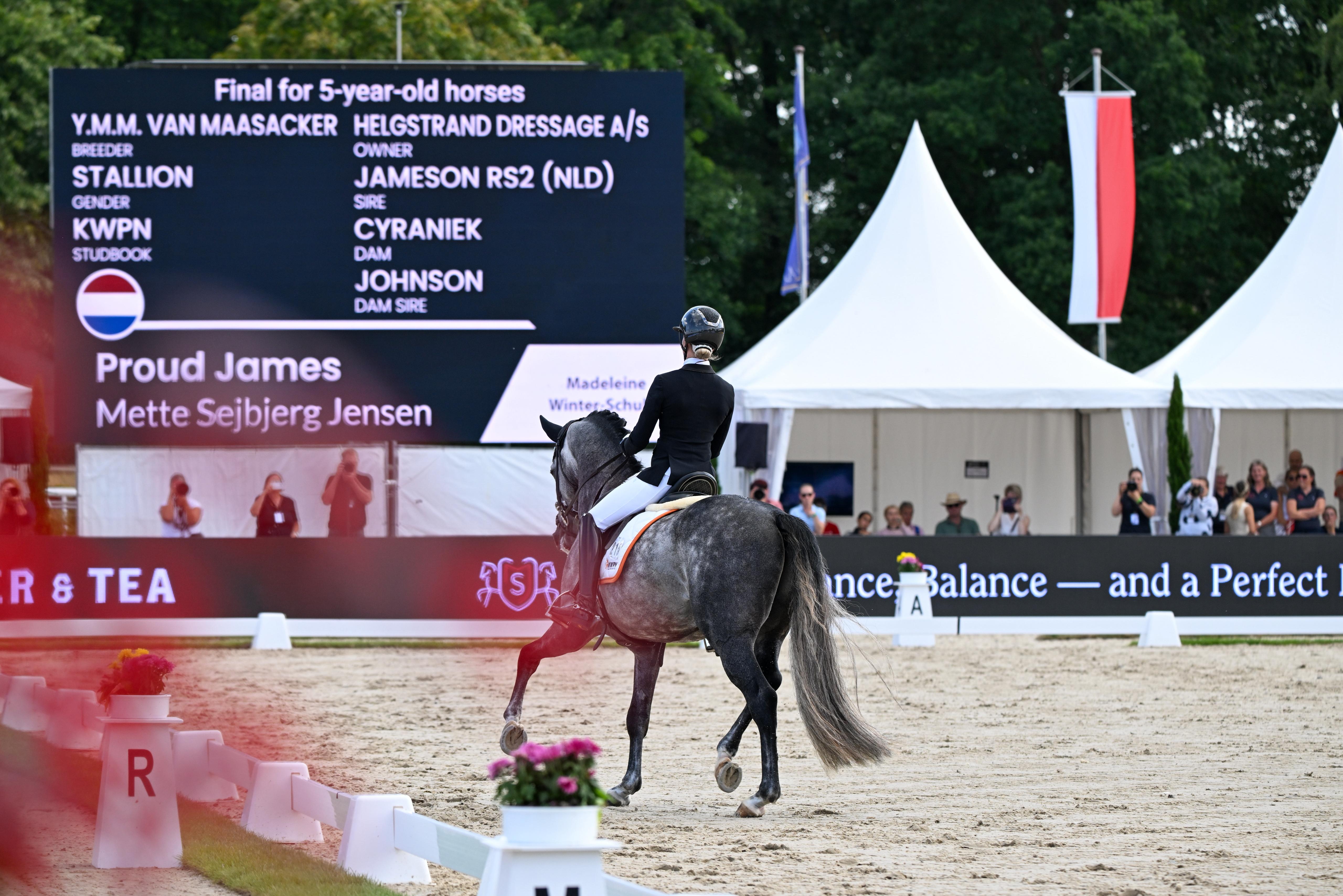 In the 5-year-old final, our breeding stallion Proud James, ridden by Mette Sejbjerg, impressed both the judges and the audience with a performance of outstanding quality. With elegance, power, and precision, they secured the gold medal, confirming the stallion’s extraordinary potential for future top sport.