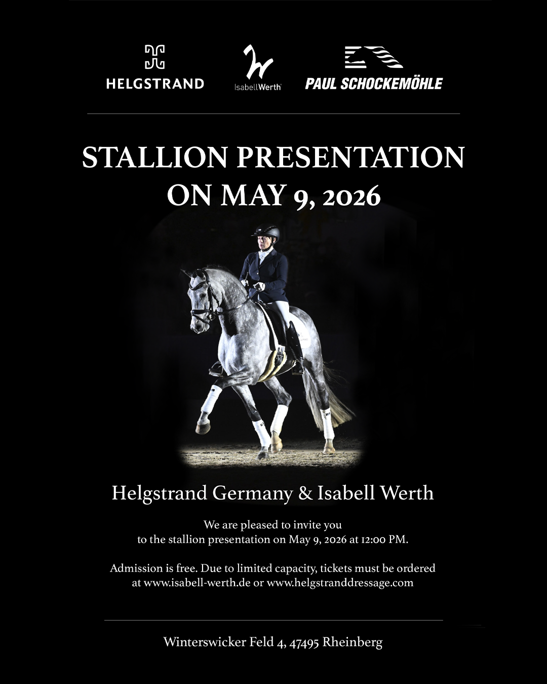 Stallion Presentation on May 9, 2026 at Helgstrand Germany and Isabell Werth.