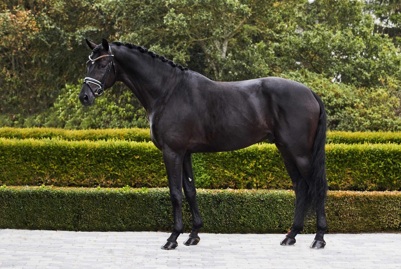 His sire Asgard’s Ibiza combines the genes of the exceptional sires Vivaldi and Jazz and comes from the same dam line as Charmeur, Zhivago and Zuidenwind. In 2017, he completed his stallion performance test in Adelheidsdorf with the expected highlights (9.5 for walk, 9.0 for trot and canter). At the World Championships for five-year-old dressage horses in 2018 in Ermelo/NED, Asgard’s Ibiza qualified for the final with a victory in the Small Final, and finished sixth. Ten sons from his first foal crop were approved for breeding at four different licensing venues. This number has now grown to over 25. He produced our Danish Champion Stallion Iron, the DSP Champion Stallion and Stallion Market price record holder Il Silenzio M, the second Reserve Champion in Westphalia, Imperial MT, as well as the Vice German Champion Ibiza Dream. In 2019, Asgard’s Ibiza won an intermediate (M) level dressage competition at the first attempt and has since been placed in advanced level dressage classes with Markus Gribbe.