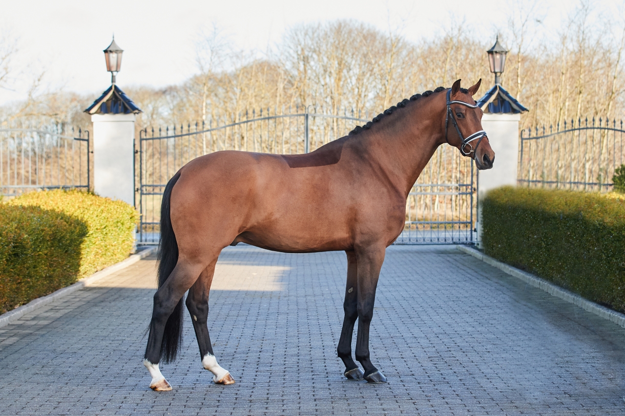 The dam's sire Zack was on the gold medal-winning team with Nanna Skodborg Merrald/DEN at the 2022 World Championships in Herning/DEN after narrowly missing out on a medal at the Olympic Games in Tokyo/JPN the year before. He and Daniel Bachmann Andersen/DEN were part of the Danish team at the World Equestrian Games in Tryon/USA and the European Championships in Rotterdam/NED. They were also placed in the World Cup Final in 2018 and 2019. Zack, who was named elite stallion and stallion of the year in Denmark, has sired over 40 licensed sons and his offspring's competition placings have catapulted him up to third place in the current WBFSH ranking of the world's best dressage sires.